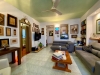 Un ampio soggiorno impreziosito da un’elegante libreria in cartongesso, perfetto per i momenti di relax.