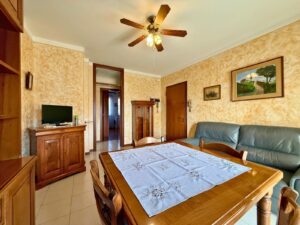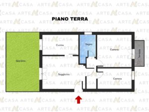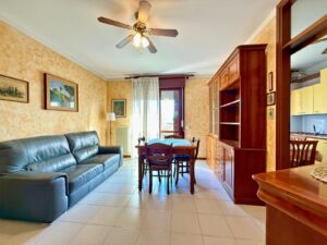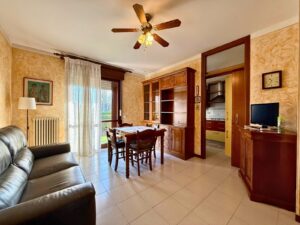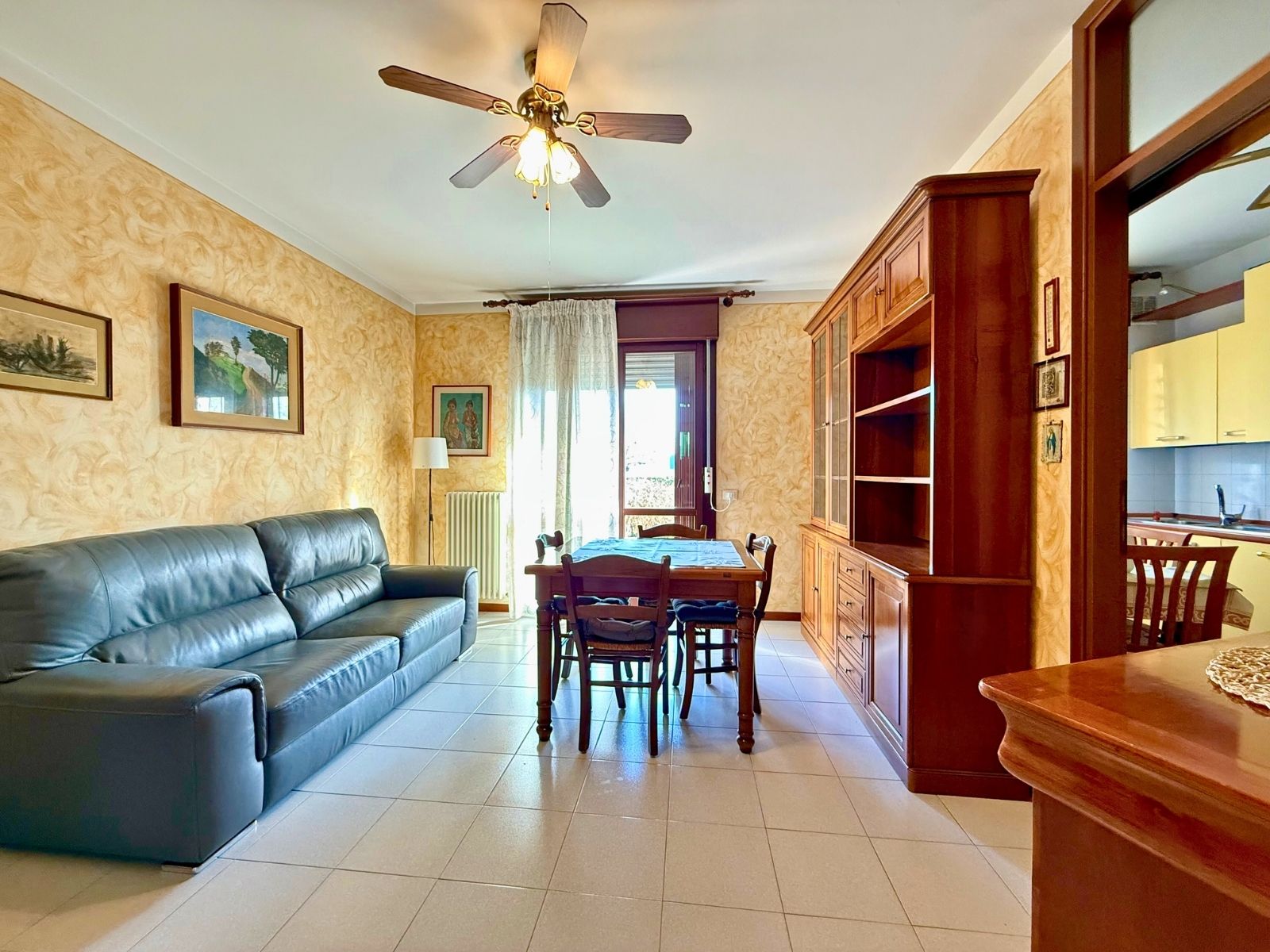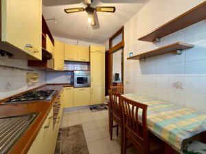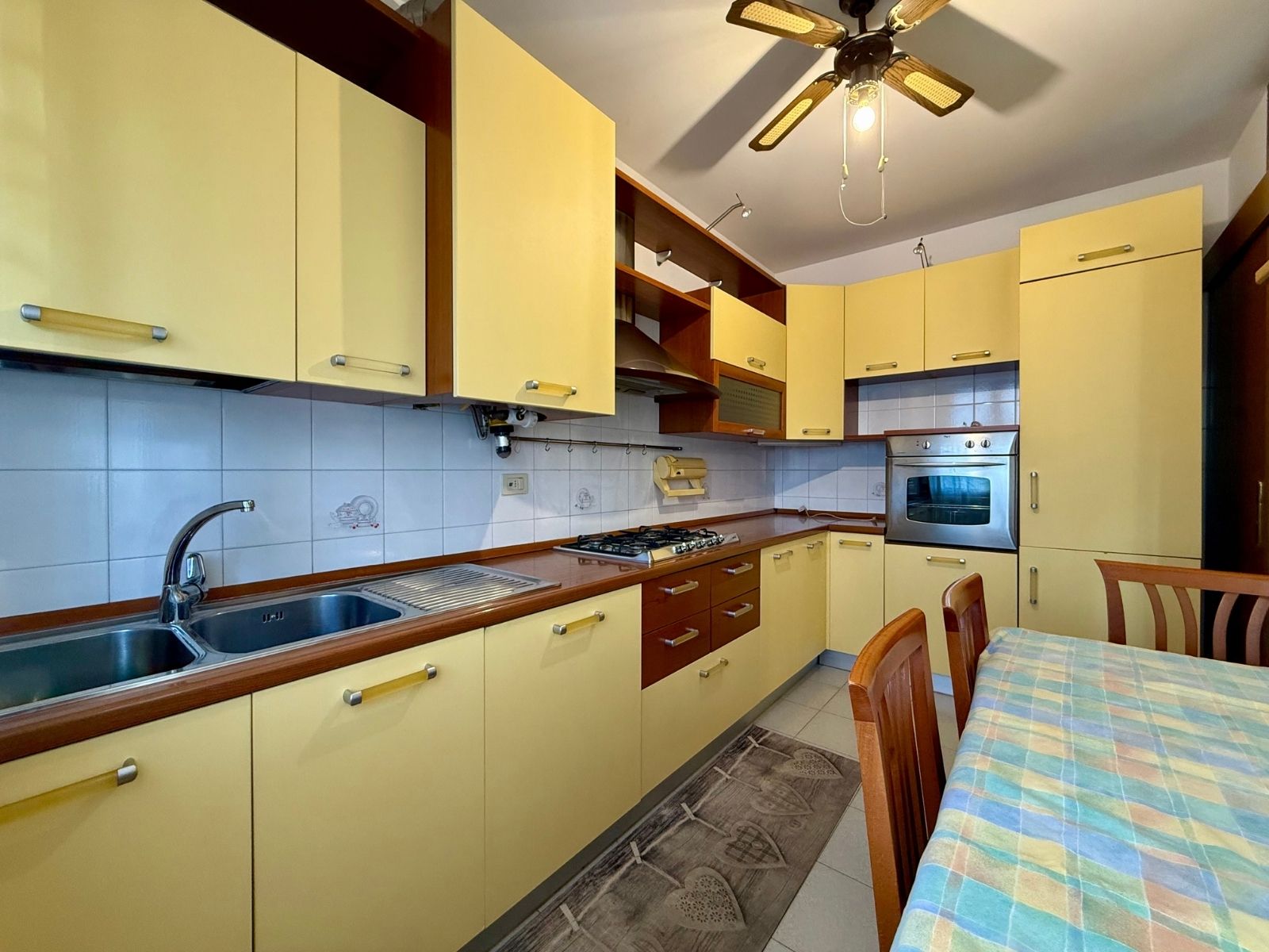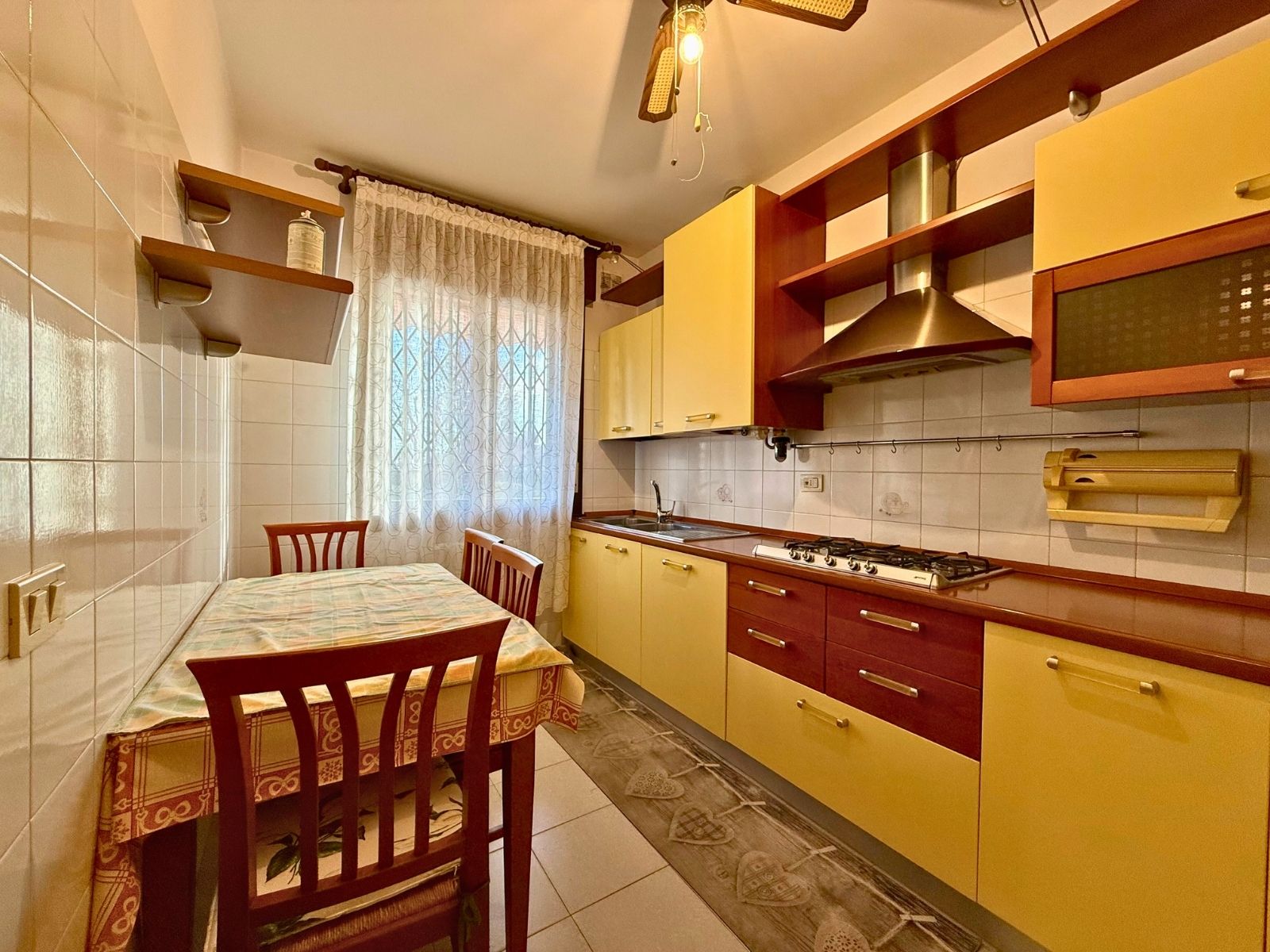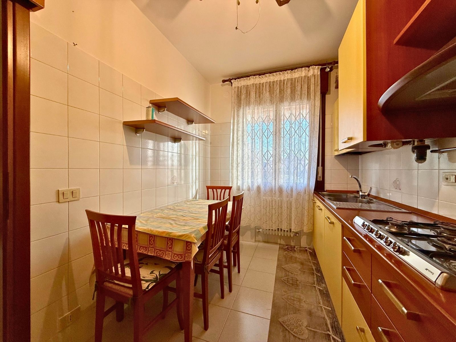 L'appartamento offre un luminoso soggiorno da cui, tramite un'ampia porta finestra, si accede al giardino privato. Adiacente al soggiorno, troviamo una cucina abitabile separata.
