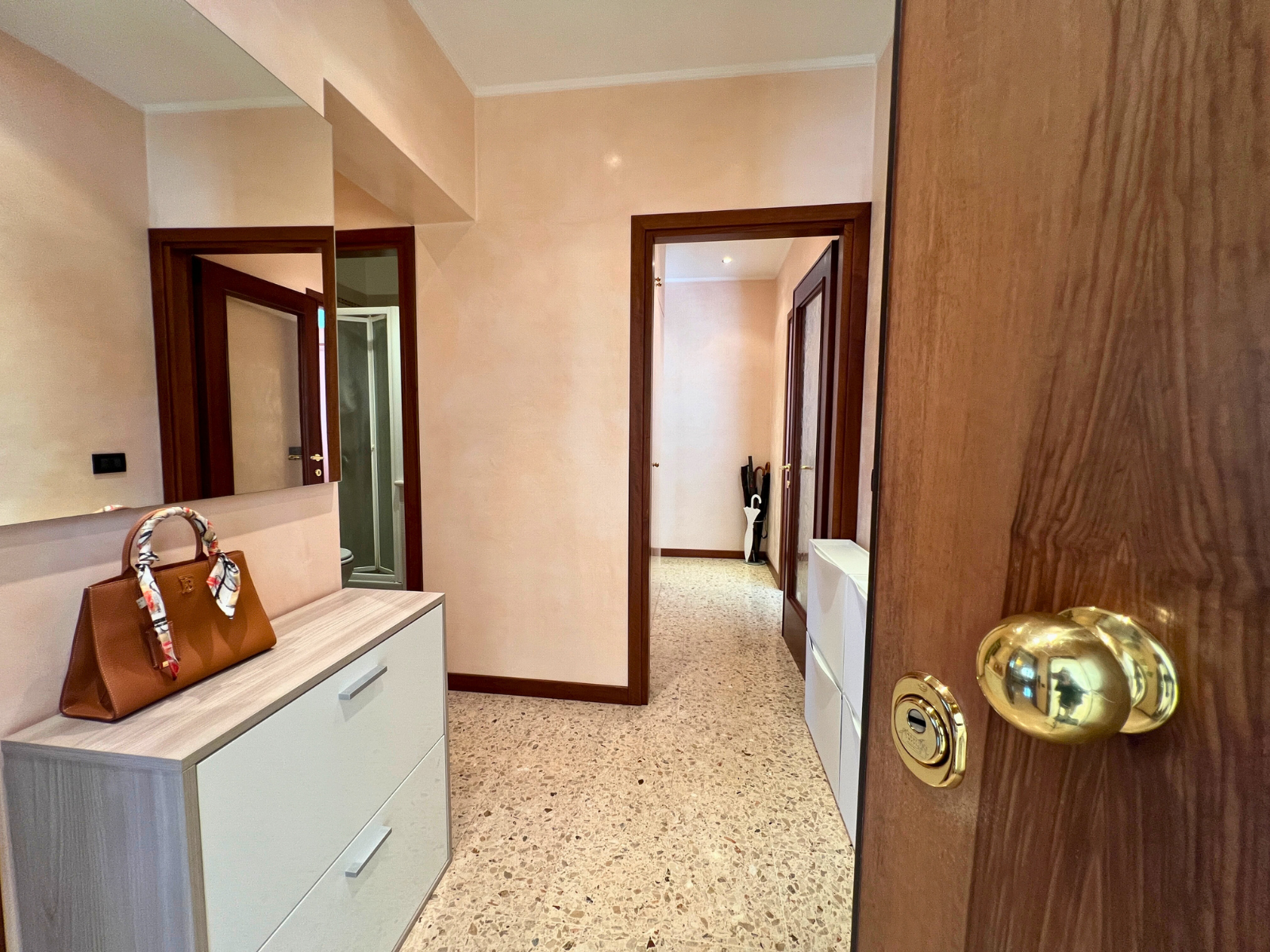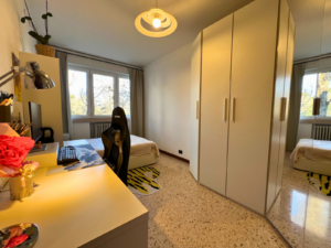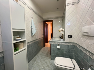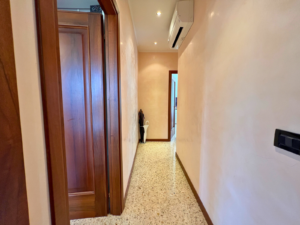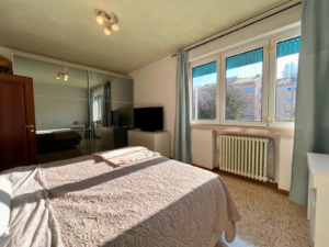 L'appartamento offre un comodo ingresso, ampio soggiorno, e cucina. La zona notte dispone di due camere da letto matrimoniali di generosa metratura e due bagni: il bagno principale con vasca da bagno e il secondo dotato di box doccia. La presenza di un ripostiglio e di un armadio a muro nel disimpegno completano la funzionalità della zona notte.