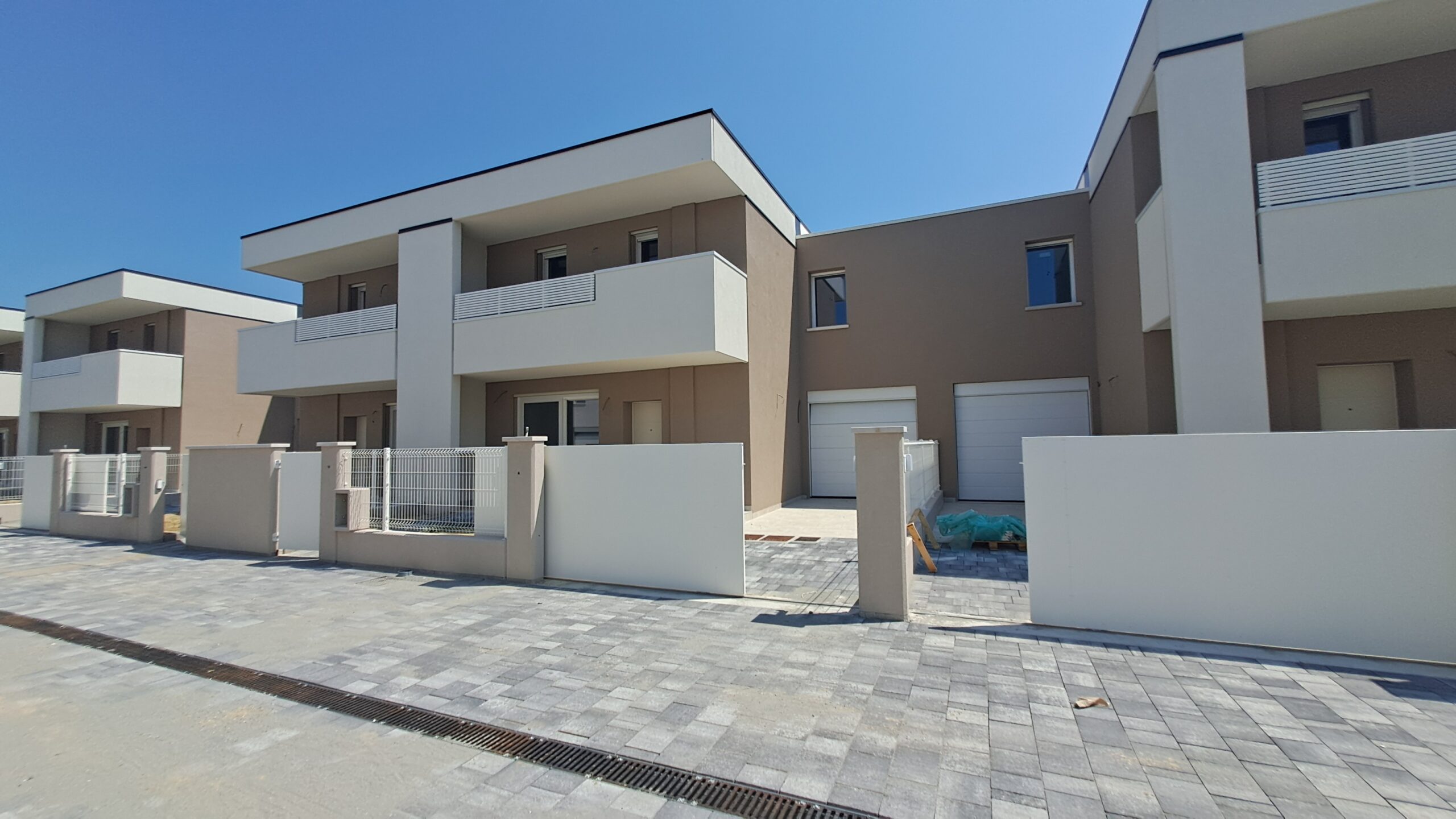 Ogni villetta si sviluppa su due piani con giardino privato e garage al piano terra.