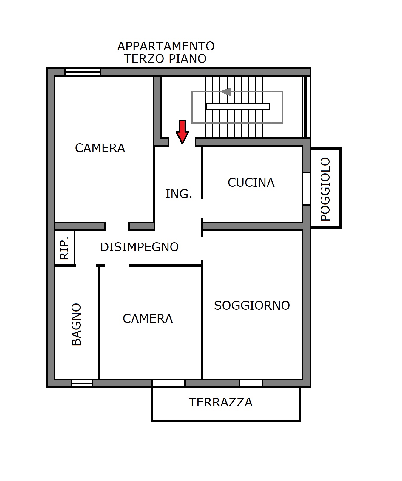 L'appartamento si distingue per una planimetria razionale e per l'ampiezza dei vani. Sviluppato su una superficie ben distribuita, l'immobile offre un comodo ingresso. La zona giorno comprende un soggiorno di generosa metratura, con terrazzino. La cucina è abitabile, separata dal soggiorno e servita da un pratico poggiolo, ideale per la gestione domestica quotidiana. Il reparto notte offre due camere da letto matrimoniali davvero spaziose, capaci di ospitare armadiature importanti e zone studio senza sacrificare la vivibilità. A servizio dell'appartamento vi è un bagno finestrato di comode dimensioni e un indispensabile ripostiglio.